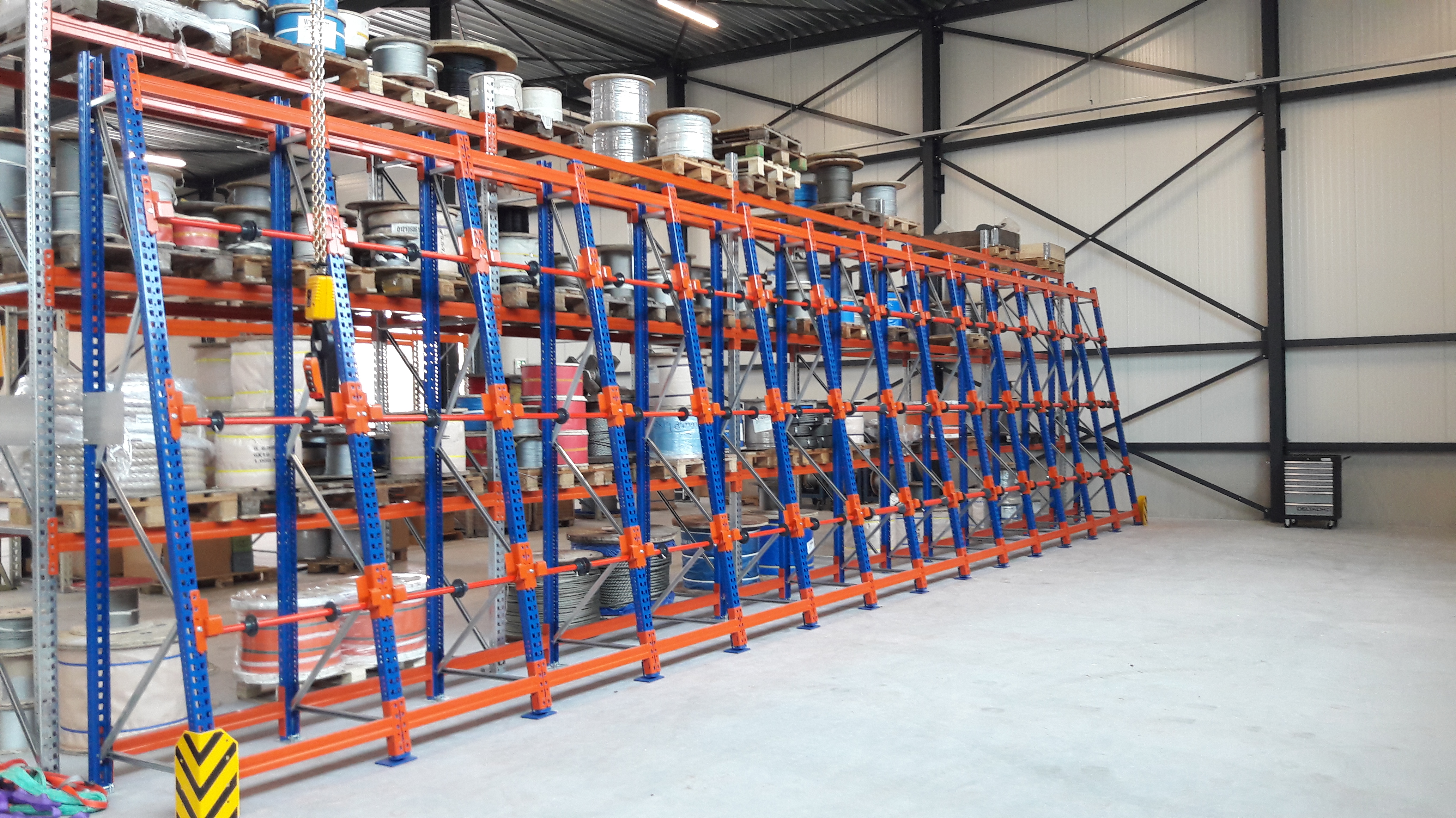 Forklift extensions are indispensable to safely get reels in and out of the cable reel rack and also to move them safely within the warehouse. These forks fit exactly around the forks of your forklift truck. The adjustable slides on the forks allow you to “lock” the reel on the forks. Also very safe for your employees!